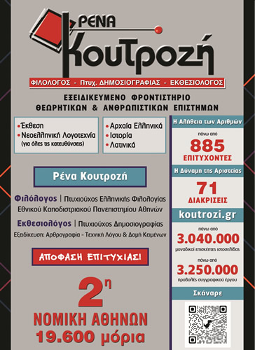 «Αναλυτική ερμηνευτική προσέγγιση των έργων του Πλάτωνα: «Πρωταγόρας» και «Πολιτεία». Η πολυετής εμπειρία στα ερμηνευτικά σχόλια των δύο έργων του Πλάτωνα μέσα από ένα βιβλίο που προσφέρεται δωρεάν στους μαθητές μου γίνεται σημαντικός παράγοντας επιτυχίας στις Γενικές Εξετάσεις.»