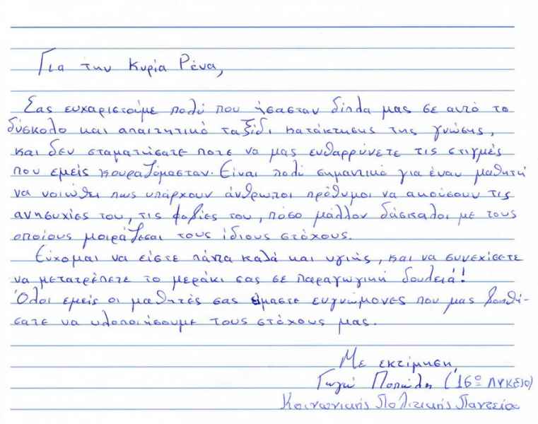 Όλοι εμείς οι μαθητές σας είμαστε ευγνώμονες που μας βοηθήσατε να υλοποιήσουμε τους στόχους μας.