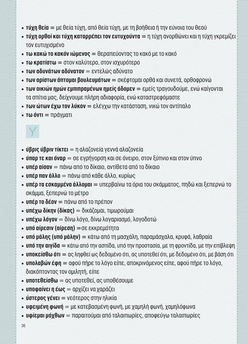Περιέχει Αρχαιοελληνικές Εκφράσεις και τη σημασία τους